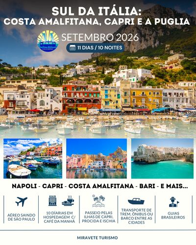 🌎 Roteiro: Napoli • Ilha de Capri • Ischia • Procida • Costa Amalfitana • Bari • e mais...